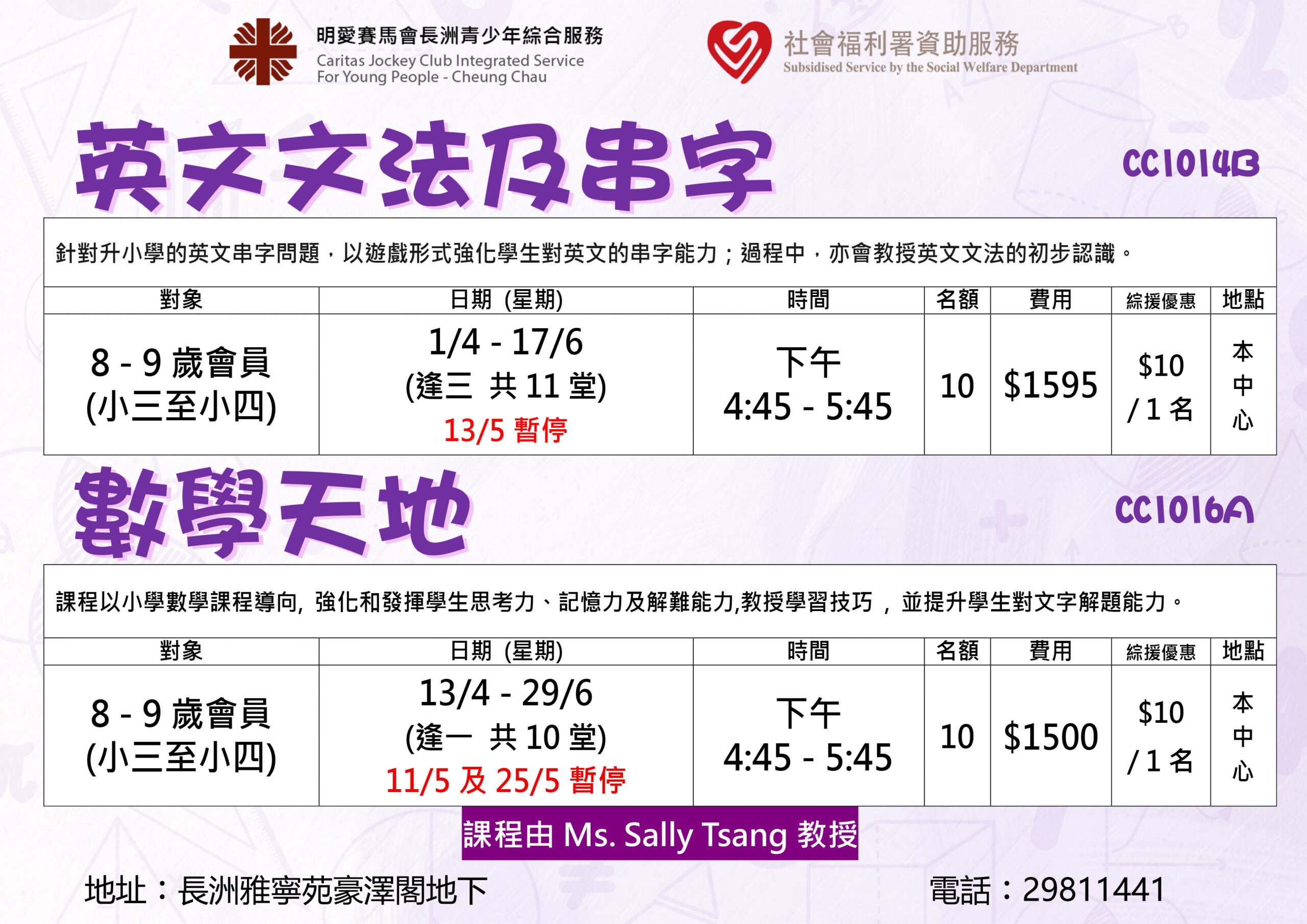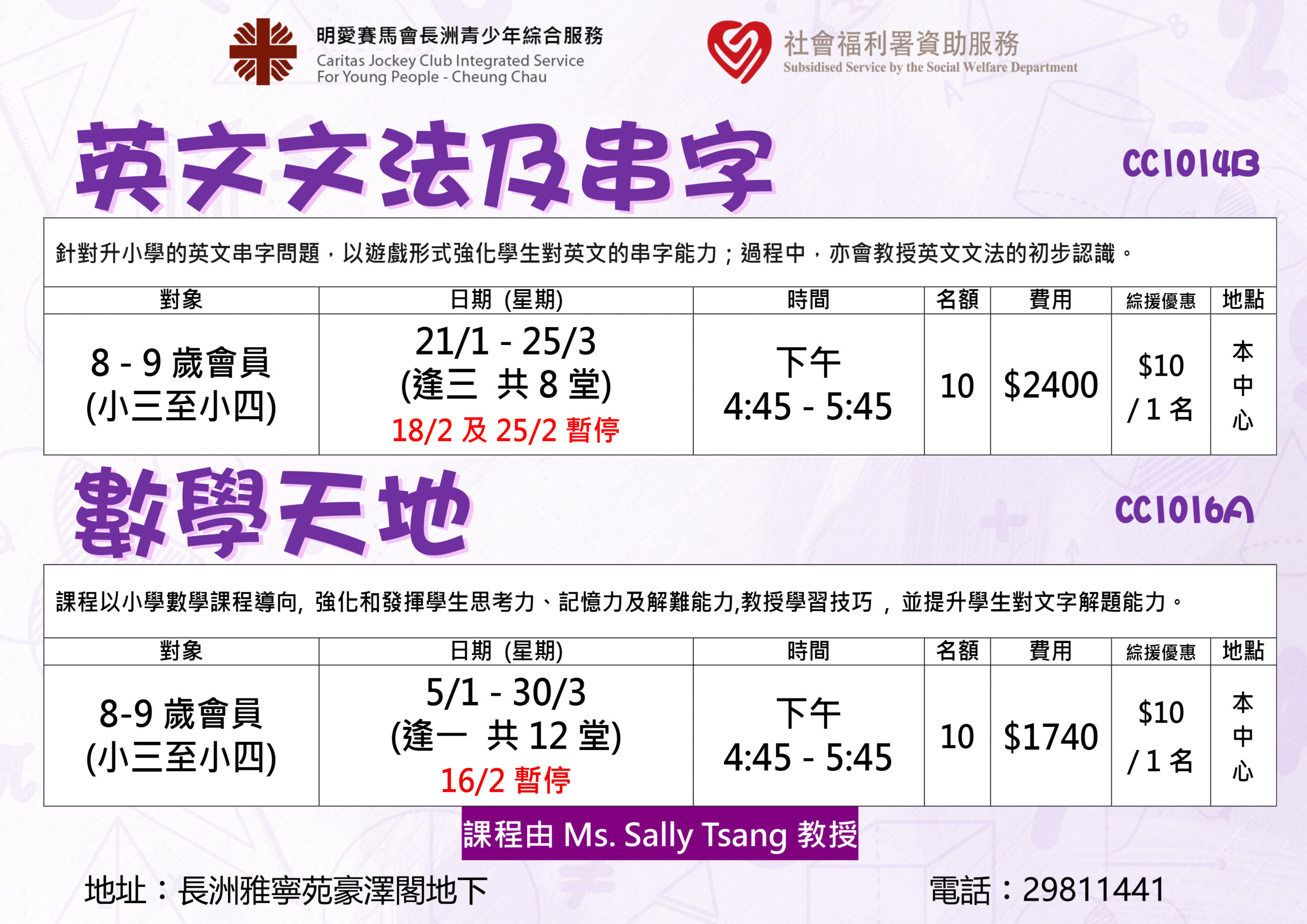 如子女有興趣參加,請致電中心 (29811441) 查詢
