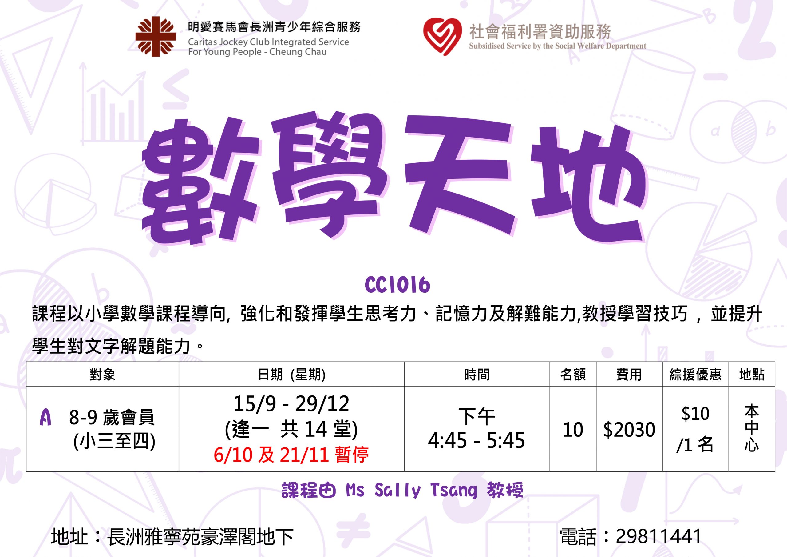 課程以小學數學課程導向, 強化和發揮學生思考力、記憶力及解難能力,教授學習技巧 , 並提升學生對文字解題能力。